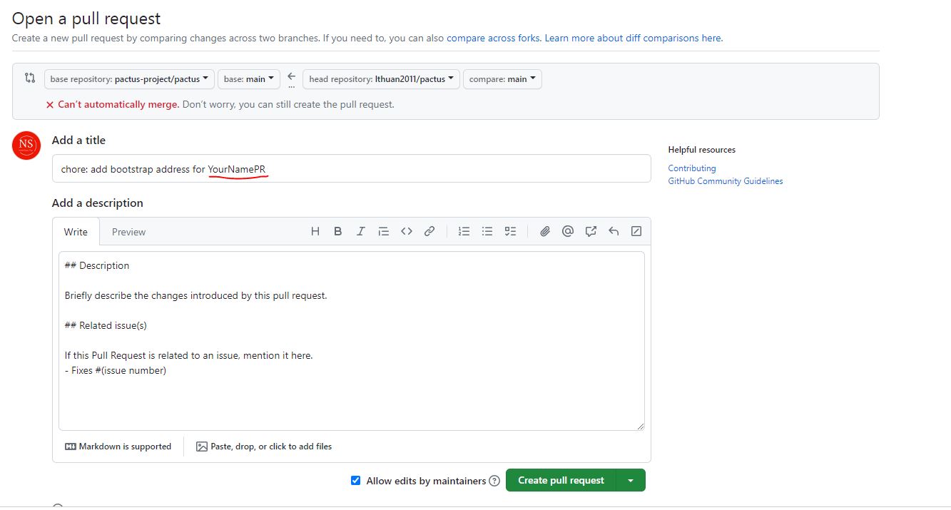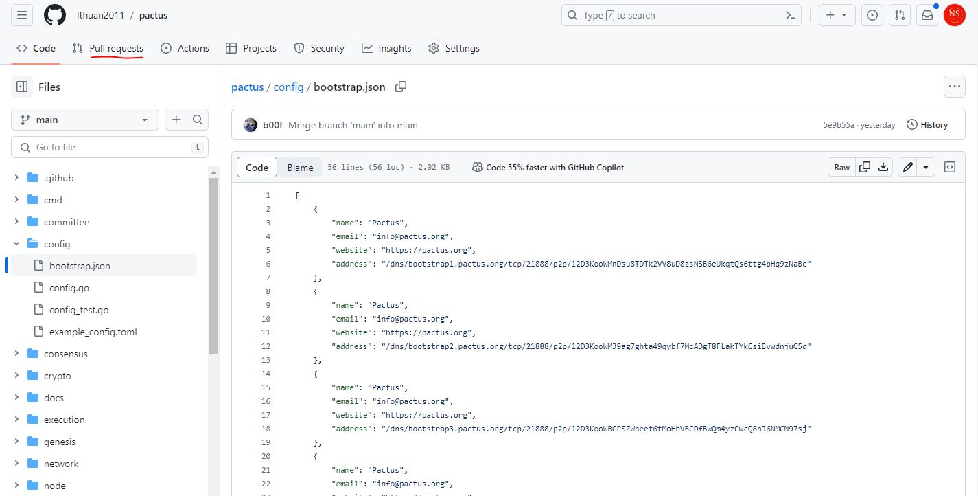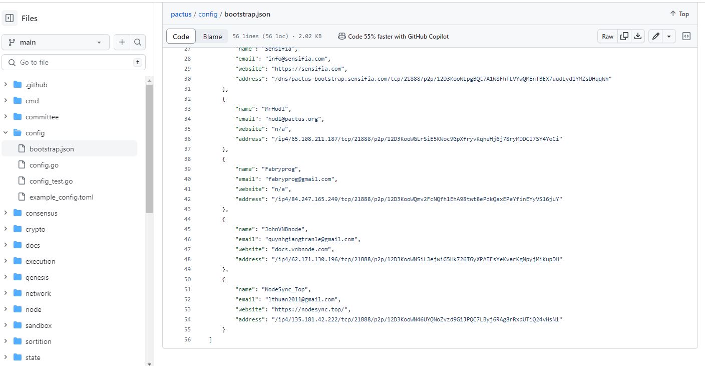 <figure><img src="https://2585830168-files.gitbook.io/~/files/v0/b/gitbook-x-prod.appspot.com/o/spaces%2FRzXvi3emVKzTi94K7StD%2Fuploads%2F7sfoEVTaE1ylVPkndaGN%2Ffork-pactus-bootstrap.JPG?alt=media&#x26;token=709dcfca-c9db-44c7-a2c1-aeff946b7ea1" alt=""><figcaption></figcaption></figure>