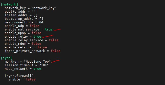 Change your node: enable\_nat\_service, enable\_relay, moniker