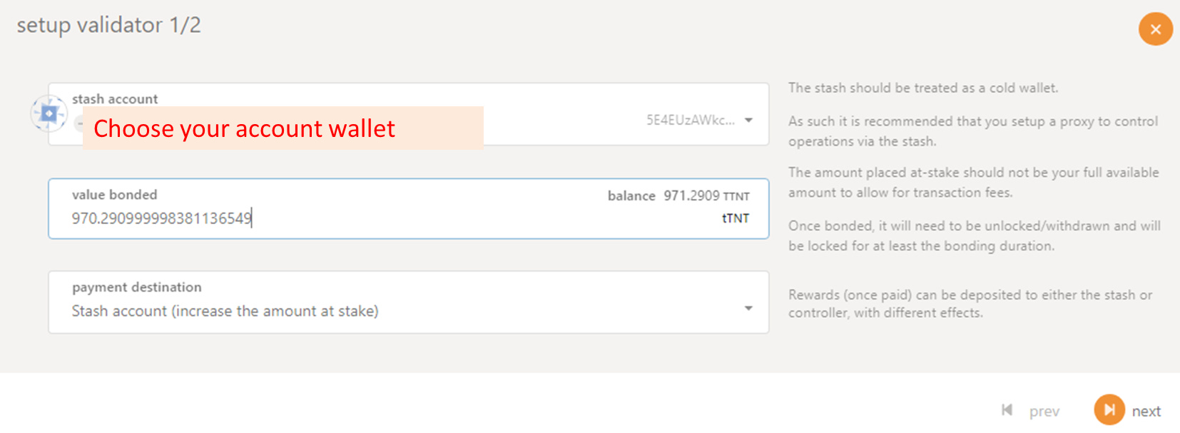 * For stash we configure **Set on-chain Identity** for identification