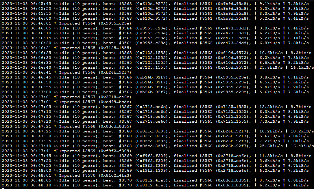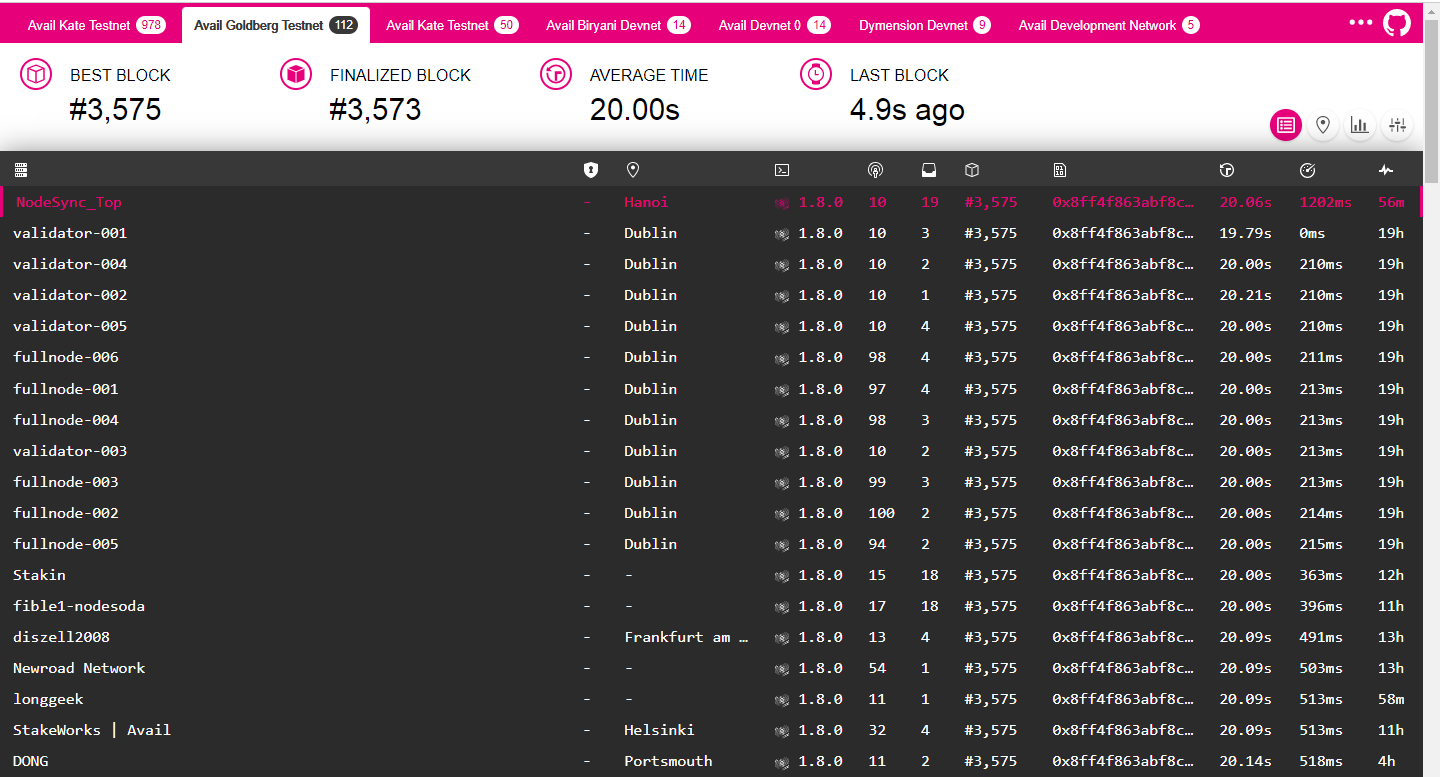 Now our node has started to synchronize. Your NodeName will show on [telemetry](https://telemetry.avail.tools/#list/0x6f09966420b2608d1947ccfb0f2a362450d1fc7fd902c29b67c906eaa965a7ae)